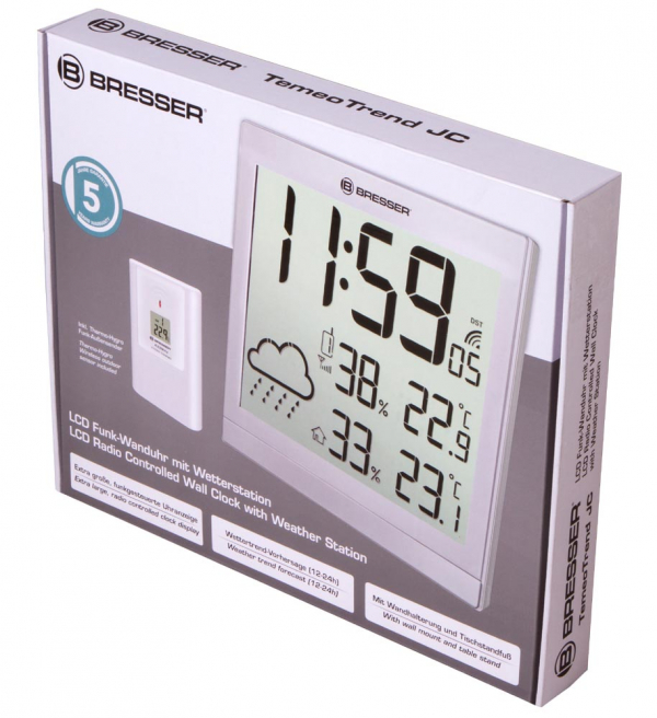 Метеостанция (настенные часы) Bresser TemeoTrend JC LCD с радиоуправлением, серебристая