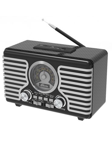 Технические характеристики - Ретро-стиль - Поддержка Bluetooth - Два динамика - Телескопическая поворотная антенна - Три диапазона приёма: FM-диапазон (87–108 МГц), КВ диапазон (8,0 – 16,0 МГц), СВ диапазон (530–1600 кГц) - Три источника питания: встроенный аккумулятор, 2 батарейки тип D (в комплект не входят), сеть 220 В - Аудиовход 3,5 мм (AUX IN) - Возможность воспроизведения MP3 с USB- и Micro SD-носителей, а также через AUX вход или Bluetooth